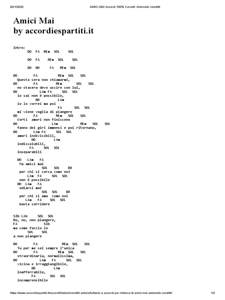 Amici Mai Accordi 100 Corretti Antonello Venditti